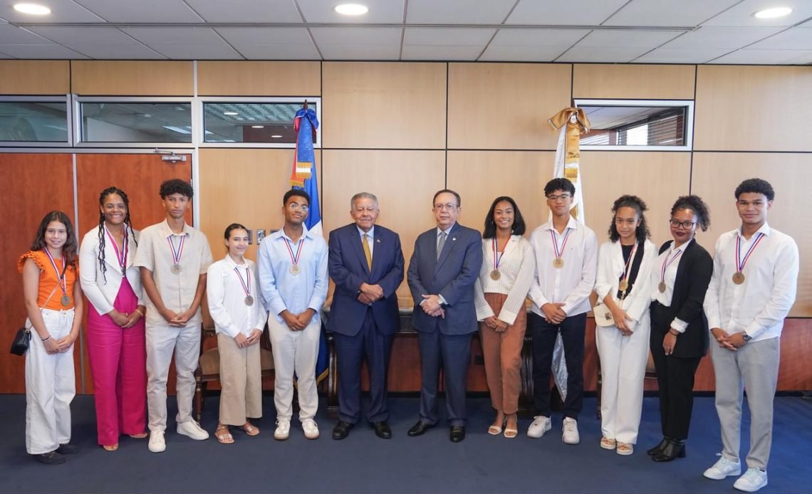 Economía.- El gobernador del Banco Central de la República Dominicana (BCRD), Héctor Valdez Albizu, recibió al embajador dominicano ante el Reino de España, Juan Bolívar Díaz, y a un grupo de estudiantes domínico-españoles que fueron galardonados en la XIV edición del Premio al Mérito Escolar instituido por dicha embajada.