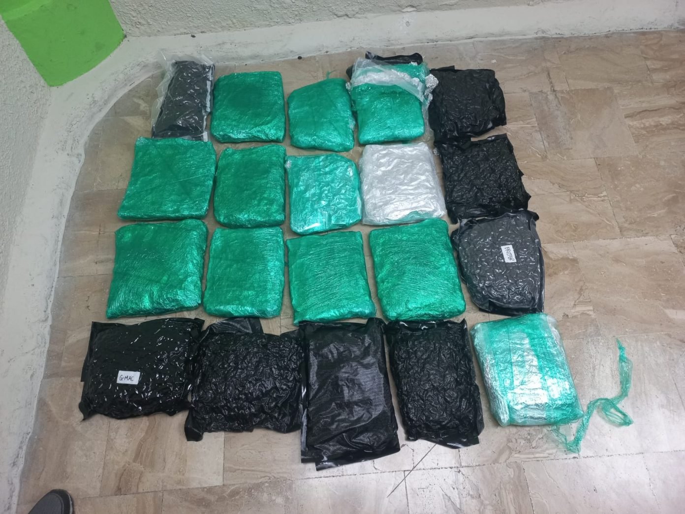 En presencia de un fiscal se procedió abrir un bulto, donde incautaron varias fundas verdes y negras conteniendo en su interior los 20 paquetes del vegetal, con un peso preliminar de 25 libras.