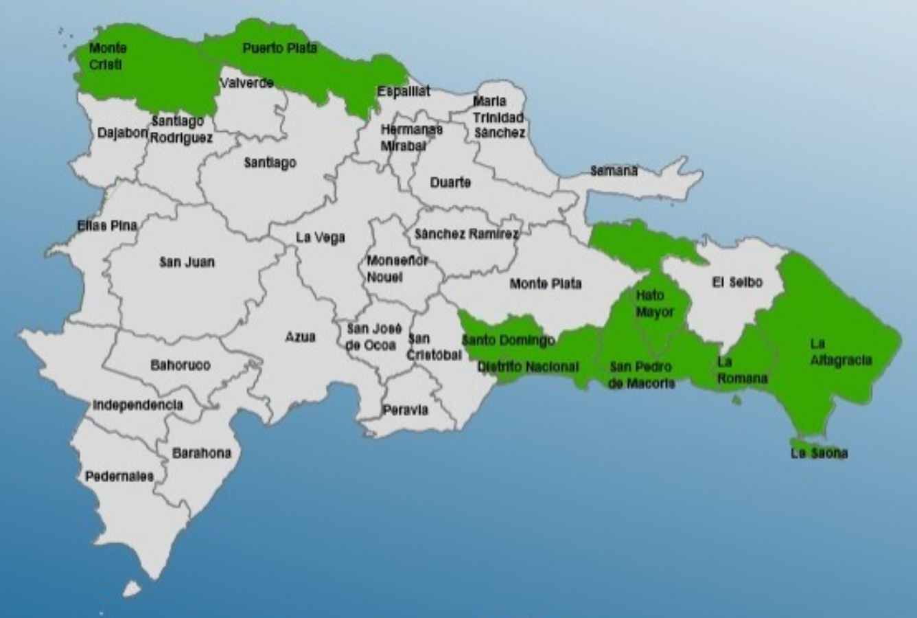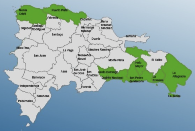 Las provincias en alerta son: Santo Domingo, Puerto Plata, San Pedro de Macorís, Hato Mayor, Distrito Nacional, Montecristi, La Altagracia y La Romana.