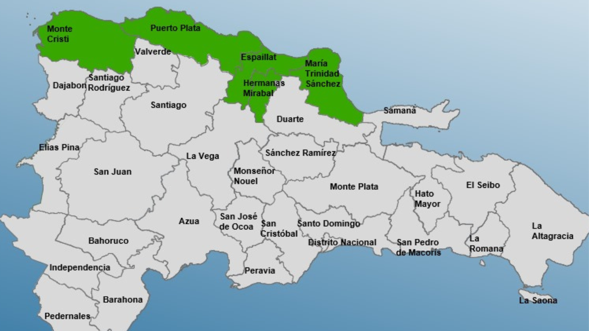 El COE declaró un nivel de alerta verde para las provincias Hermanas Mirabal, Espaillat, Montecristi, María Trinidad Sánchez y Puerto Plata.