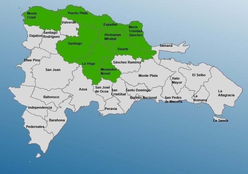Las provincias que se mantendrán en alerta son: Espaillat, Hermanas Mirabal, María Trinidad Sánchez, La Vega, Puerto Plata, Monte Cristi, Duarte, Santiago, Monseñor Nouel.