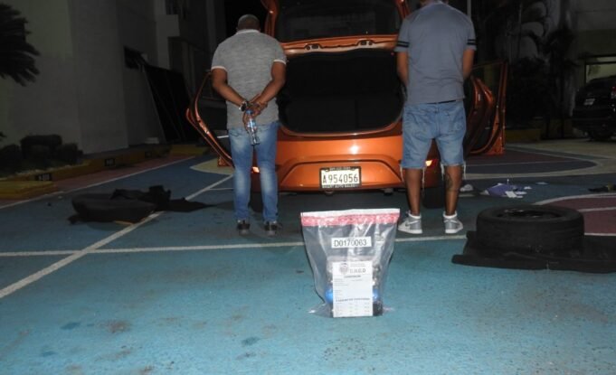 Las autoridades montaron labores de vigilancia e inteligencia en el tramo carretero Cabrera-Nagua, donde interceptaron a dos hombres a bordo de un vehículo, marca Hyundai, color naranja, placa A954056, que tras ser requisado se detectó un compartimiento secreto (caleta) debajo del asiento delantero.