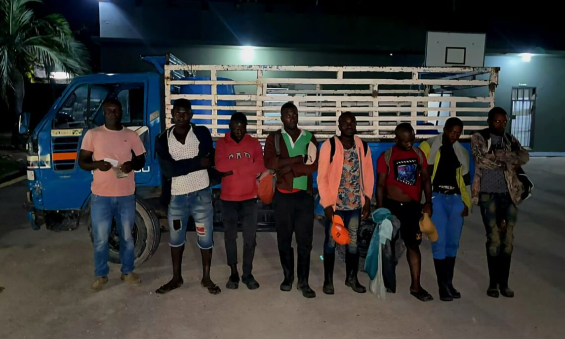 El camión, marca Mitsubishi, color azul, era conducido por el ciudadano haitiano Renold HTI, quien transportaba, en la cama del vehículo, a los indocumentados.