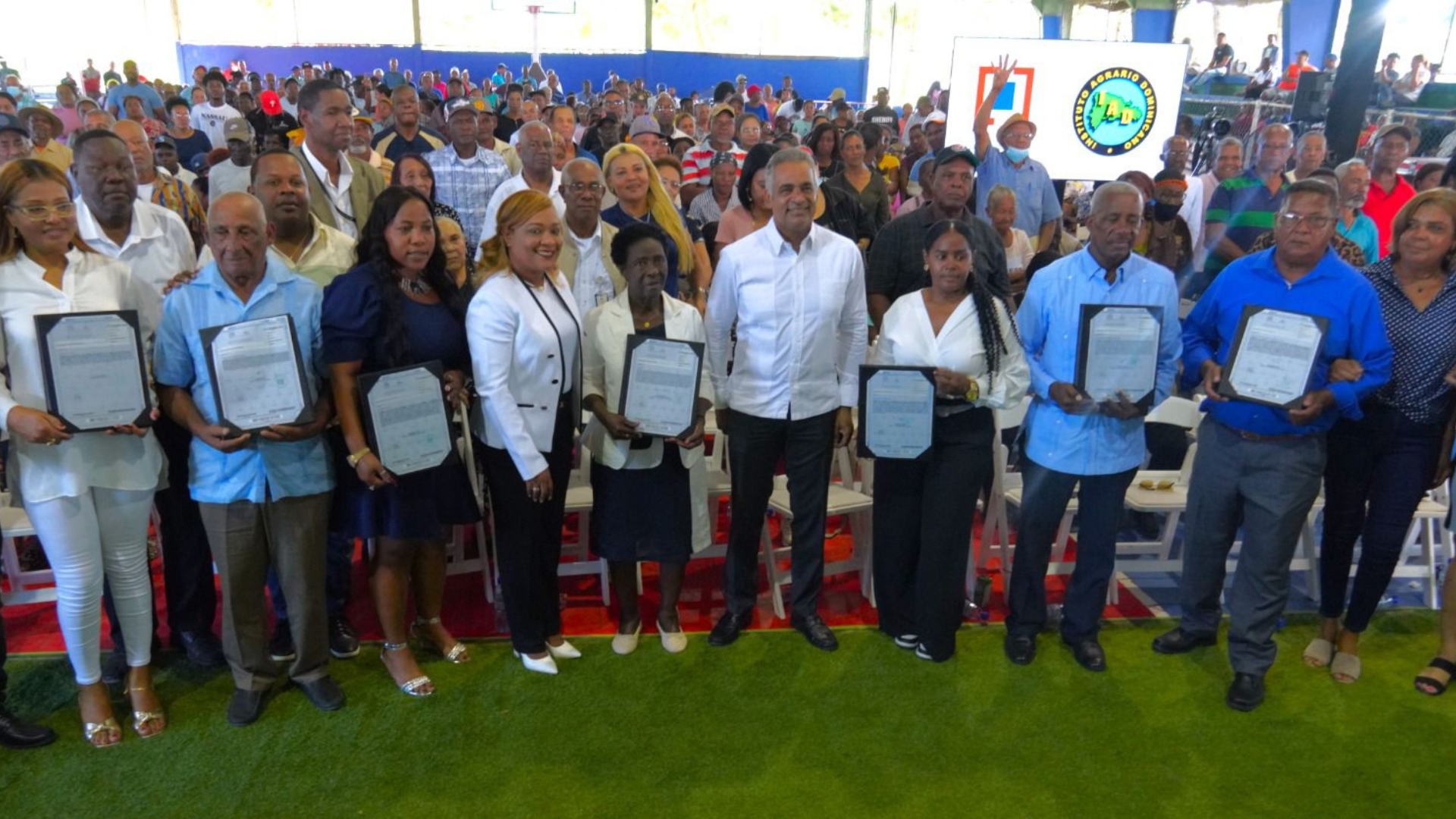 Santo Domingo.- El Gobierno dominicano, a través de la Unidad Técnica de Titulación de Terrenos del Estado (UTECT), entregó ayer 990 nuevos títulos de propiedad a residentes del municipio Consuelo, en la provincia San Pedro de Macorís, durante un acto encabezado por el ministro de la Presidencia, Joel Santos Echavarría.