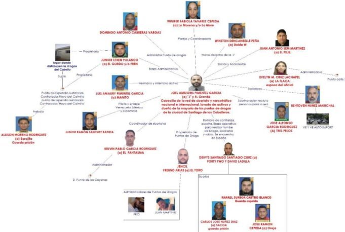 Entre los principales investigados figuran Joel Ambioris Pimentel García (a) la J, José Halminton Ureña (a) Nino Come Mezcla), Isidro Marcelino Tavares Acevedo (Chicho) y Rafael Tomás Conill Salcedo (a) Niño Hot Dog (quien también usa el nombre de Máximo Alberto Sánchez), Kelvin Manuel Concepción López (a) El Menor.