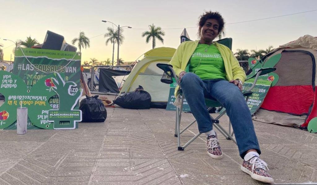 Santo Domingo, RD. Entró este lunes a su quinto día, el Campamento de feministas frente al Palacio Nacional para presionar por las tres causales del aborto que se ha dejado fuera del Código Penal para conocerse en una ley especial.