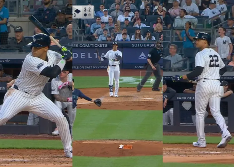 Mediante el último juego de la serie entre los Yankees de New York vs los Marineros de Seattle, Juan Soto vio venir una recta con la cuenta llena, dos outs y Anthony Volpe a bordo, conectó a 414 pies de distancia con una velocidad de salida de 107 millas por el medio del jardín izquierdo y central.