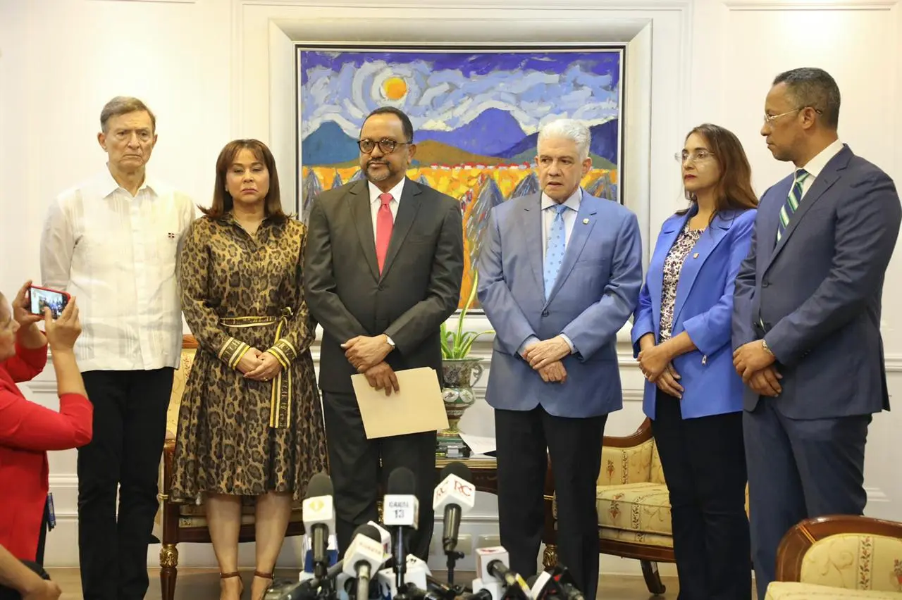 Las iniciativas del Poder Ejecutivo fueron recibidas por el presidente del Senado, Eduardo Estrella; la secretaria del Bufete Directivo del Senado, Lia Diaz y el senador de Pedernales y vocero de la Fuerza del Pueblo, Dionis Sánchez.
