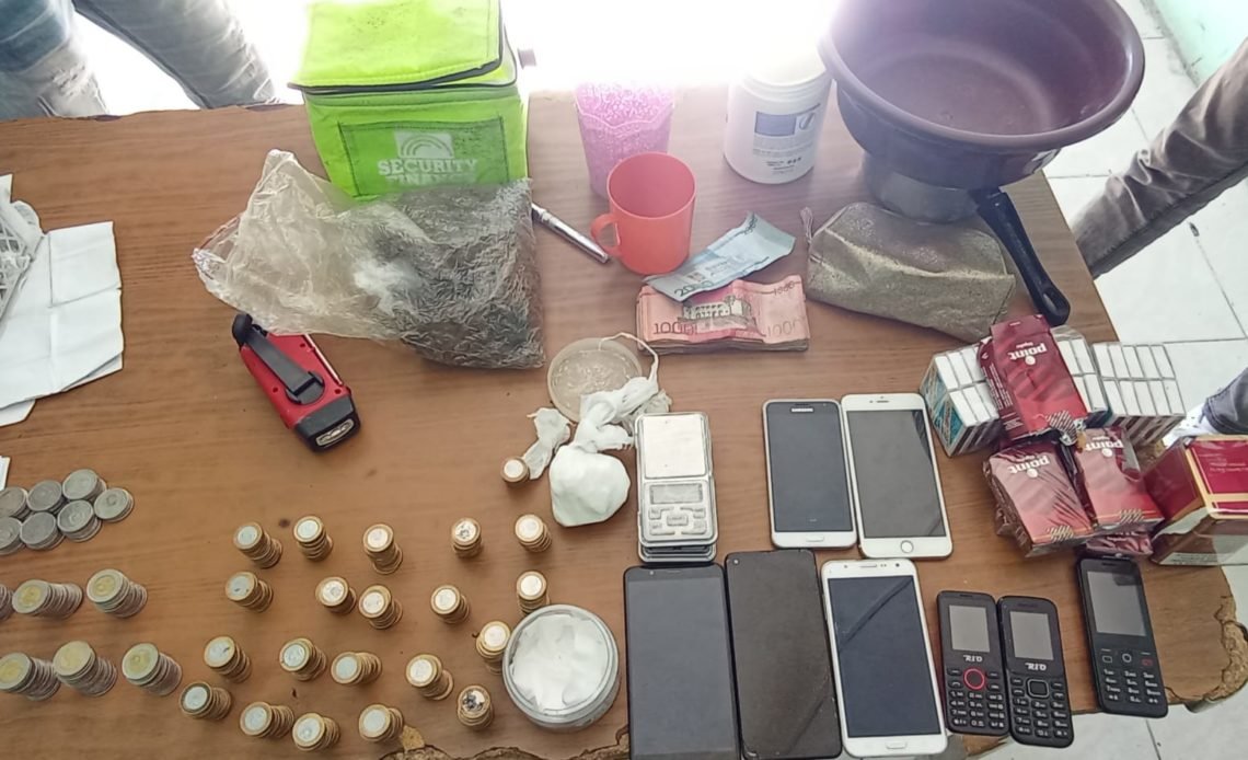 En la referida vivienda se ocupó una mochila contenido en su interior 527.5 gramos de varias sustancias narcóticas, 4,800 pesos en efectivo, dos balanzas, ocho celulares y 30 cajetillas de fósforos.