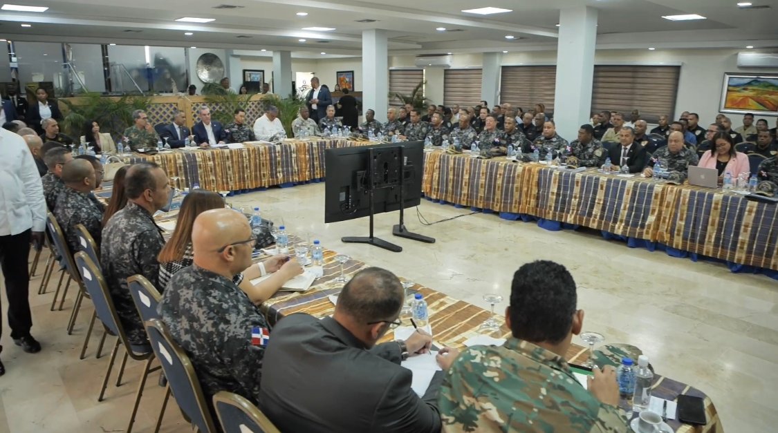 Santo Domingo.- El presidente Luis Abinader encabeza este lunes la septima reunión de seguimiento al Plan de Seguridad Ciudadana en el Palacio de la Policía Nacional, con la presencia de algunos ejecutivos de medios y comunicadores.