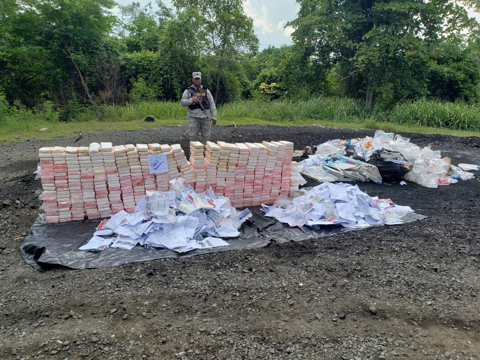 Miembros del Ministerio Público y la Dirección Nacional de Control de Drogas (DNCD) conjuntamente con otros órganos de seguridad del Estado ejecutaron las incautaciones durante los operativos que realizan contra el tráfico de drogas en todo el país, en el transcurso de los cuales fueron ocupados un total de 480,311.828 kilogramos en sectores de Santo Domingo.