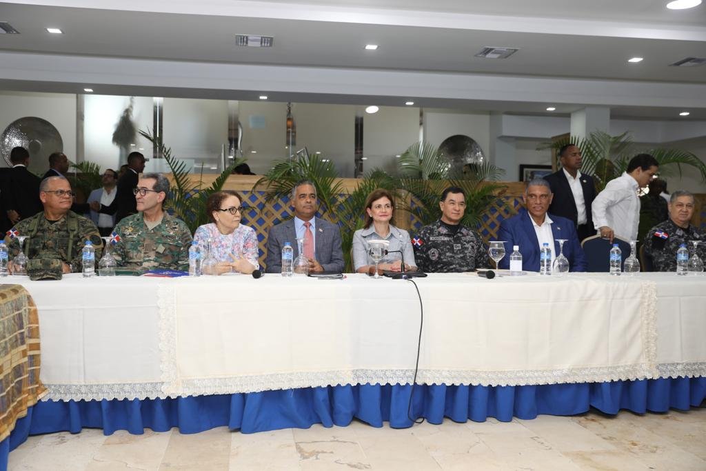 En compañía de la vicemandataria, están presentes el ministro de la Presidencia, Joel Santos Echavarría; de Defensa, teniente general Carlos Luciano Díaz Morfa, (ERD); de Interior y Policía, Jesús Vásquez Martínez; el director general de la Policía Nacional, mayor general Eduardo Alberto Then; el comandante general del Ejército de República Dominicana, mayor general Carlos Antonio Fernández Onofre, y el titular de la Dirección Nacional de Control de Drogas (DNCD), vicealmirante José Cabrera Ulloa.