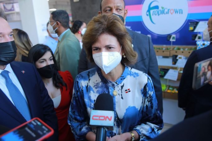 La funcionaria fue abordada por la prensa al finalizar el acto protocolar de la segunda edición “Mujeres en Exportación: hacia la resiliencia productiva” actividad que realiza ProDominicana.