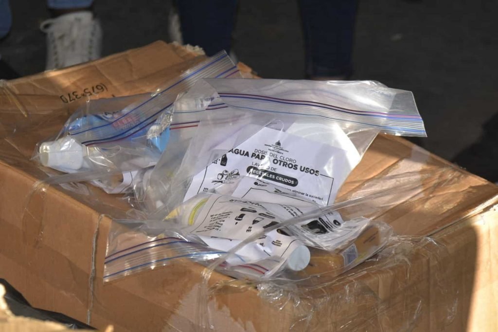 Los trabajos fueron iniciados en la parada de autobuses del kilómetro 9 de la autopista Duarte, donde esta mañana se entregan a los pasajeros 1,500 kits que contienen cloro, jabón, alcohol y un instructivo preventivo.