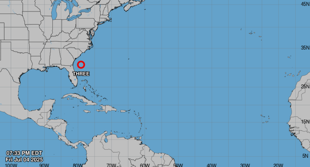 Santo Domingo.-El Instituto Dominicano de Meteorología (Indomet) informó este viernes que en la tarde de hoy se ha formado la depresión tropical número tres en aguas del océano Atlántico occidental, específicamente a unos 240 kilómetros al sur/sureste de la costa de Carolina del Sur, Estados Unidos.