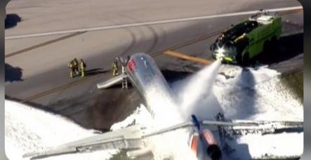 Santo Domingo, RD. Un avión de Red Air que salió desde Santo Domingo al Aeropuerto Internacional de Miami se incendió después de hacer un aterrizaje forzoso, destrozando una torre de comunicaciones y un pequeño edificio.