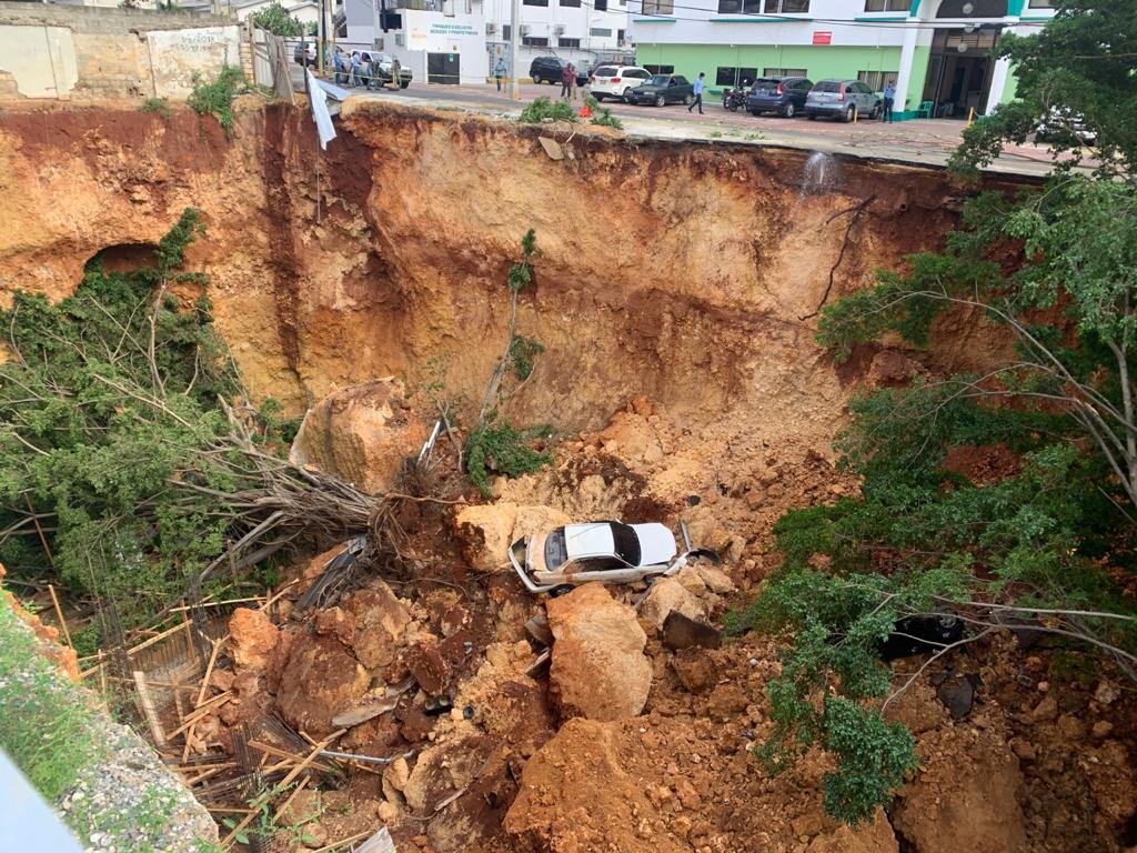 Con el derrumbe colapsaron dos vehículos que aún permanecen en el lugar y varios árboles sin que hasta el momento se reporten heridos.