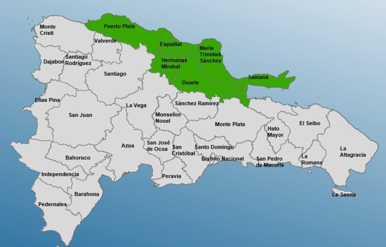 Se trata de Puerto Plata, Espaillat, Hermanas Mirabal, María Trinidad Sánchez, Duarte y Samaná.