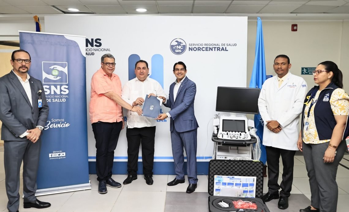 Posteriormente, el doctor Lama junto al director regional Norcentral, Manuel Lora Perelló, se desplazaron al Hospital Regional José María Cabral y Báez, donde entregaron un ecocardiógrafo adulto pediátrico 4D, equipo altamente especializado, único en la Red Pública, valorado en más de 11 millones de pesos.