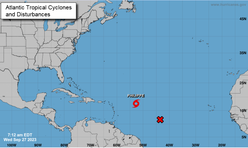 Tiempo.- La Oficina Nacional de Meteorología (Onamet) informó este jueves de que sigue dando seguimiento a la trayectoria de la tormenta tropical Philippe, que continúa perdiendo fuerza al aproximarse al noreste del Caribe.