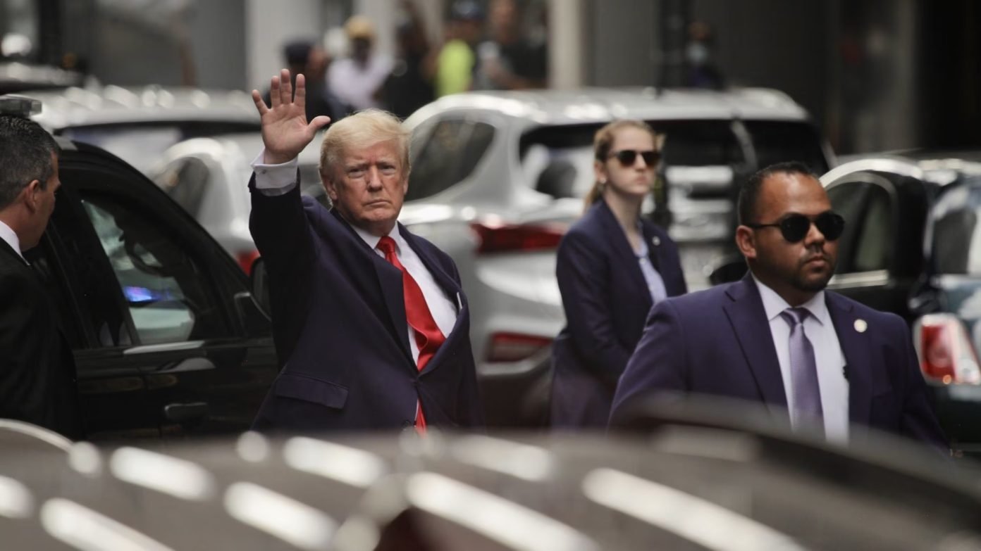 Internacional.- El expresidente de Estados Unidos, Donald Trump, sale de su residencia en Nueva York rumbo a la oficina del fiscal general para declarar por una demanda civil.